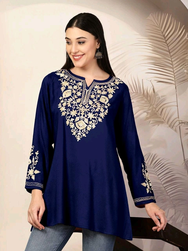 Designed for women who value comfort without compromising on style, this kurti is your go-to choice for effortless fashion. The heavy rayon fabric ensures durability while keeping you comfortable all day long, and the intricate embroidery work highlights your refined taste.