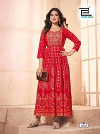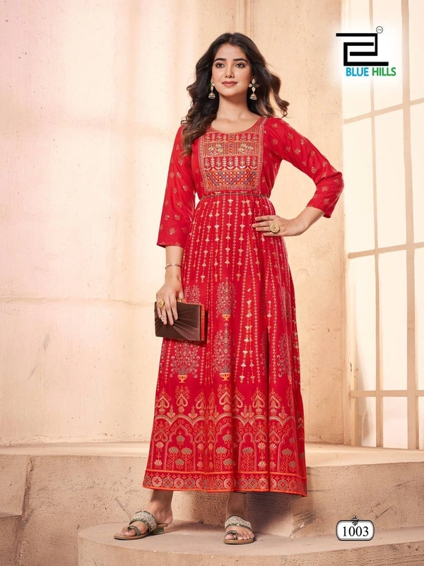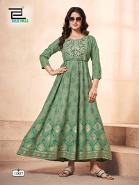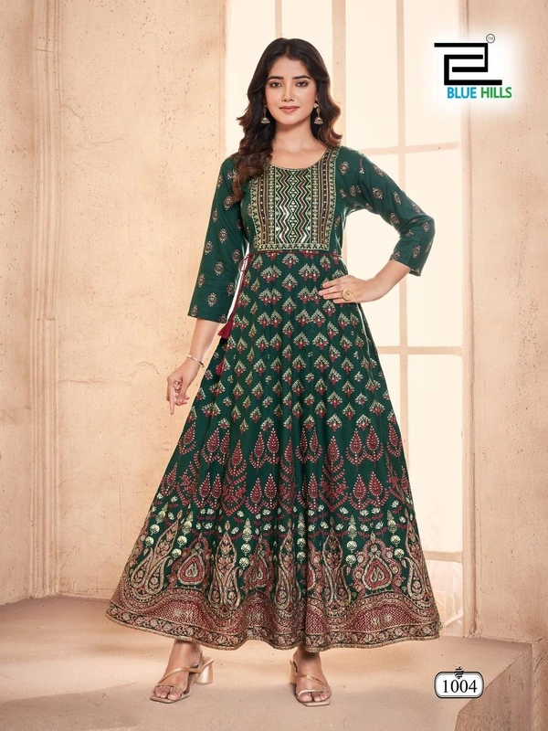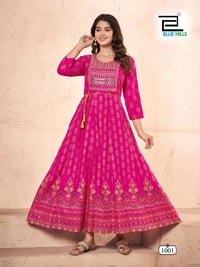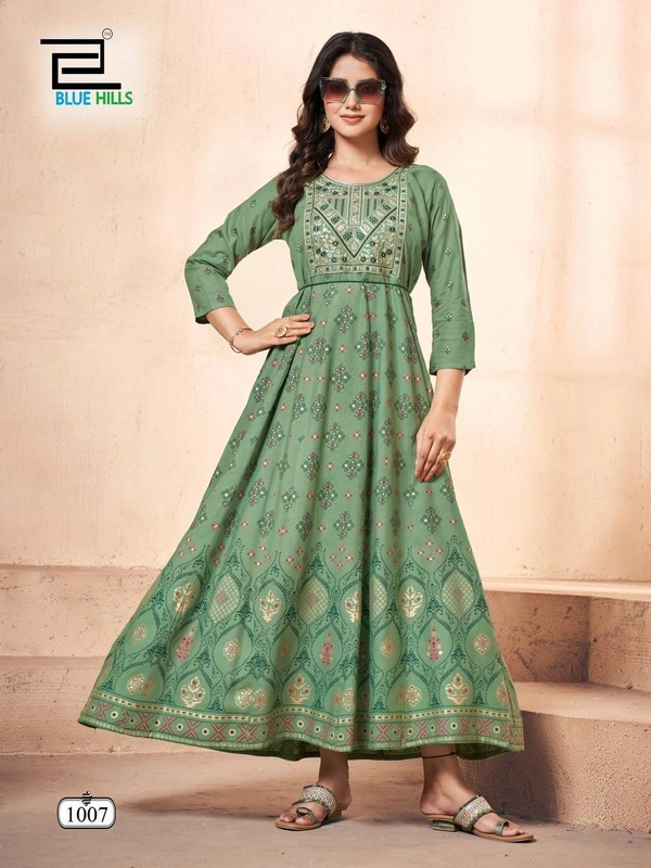 Step into timeless elegance with our stunning Long Anarkali Gown, designed to make you stand out at any occasion. Crafted from high-quality rayon print fabric, this gown effortlessly blends comfort with style. Featuring exquisite embroidery work, it adds a touch of sophistication to your wardrobe while ensuring you feel confident and glamorous.
