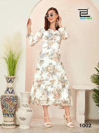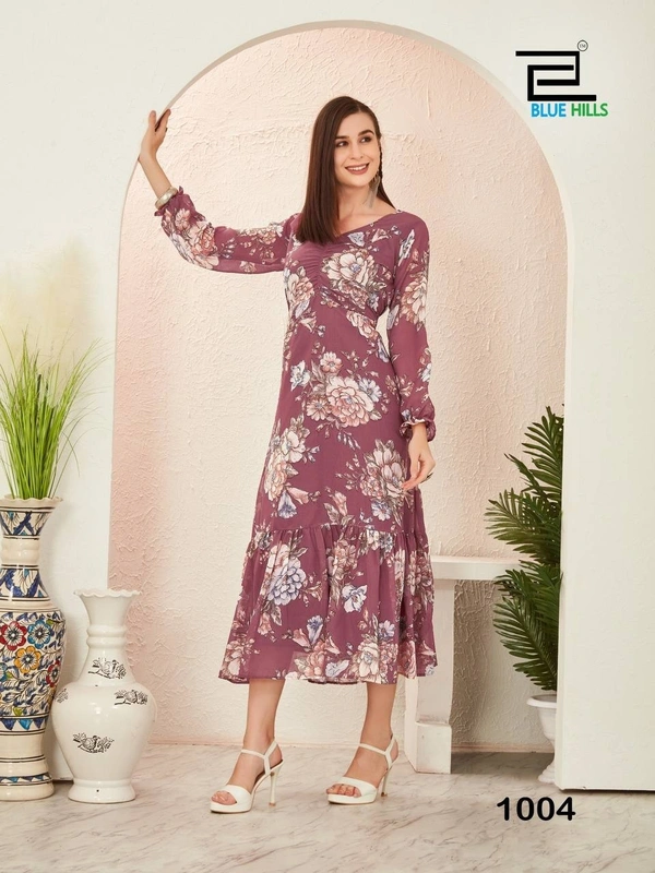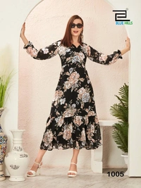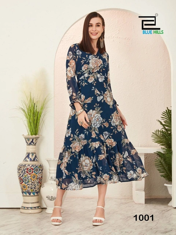Whether you're heading to a festive gathering, a casual outing, or a special event, this gown is your go-to choice. The heavy Georgette print ensures durability and a luxurious feel.
